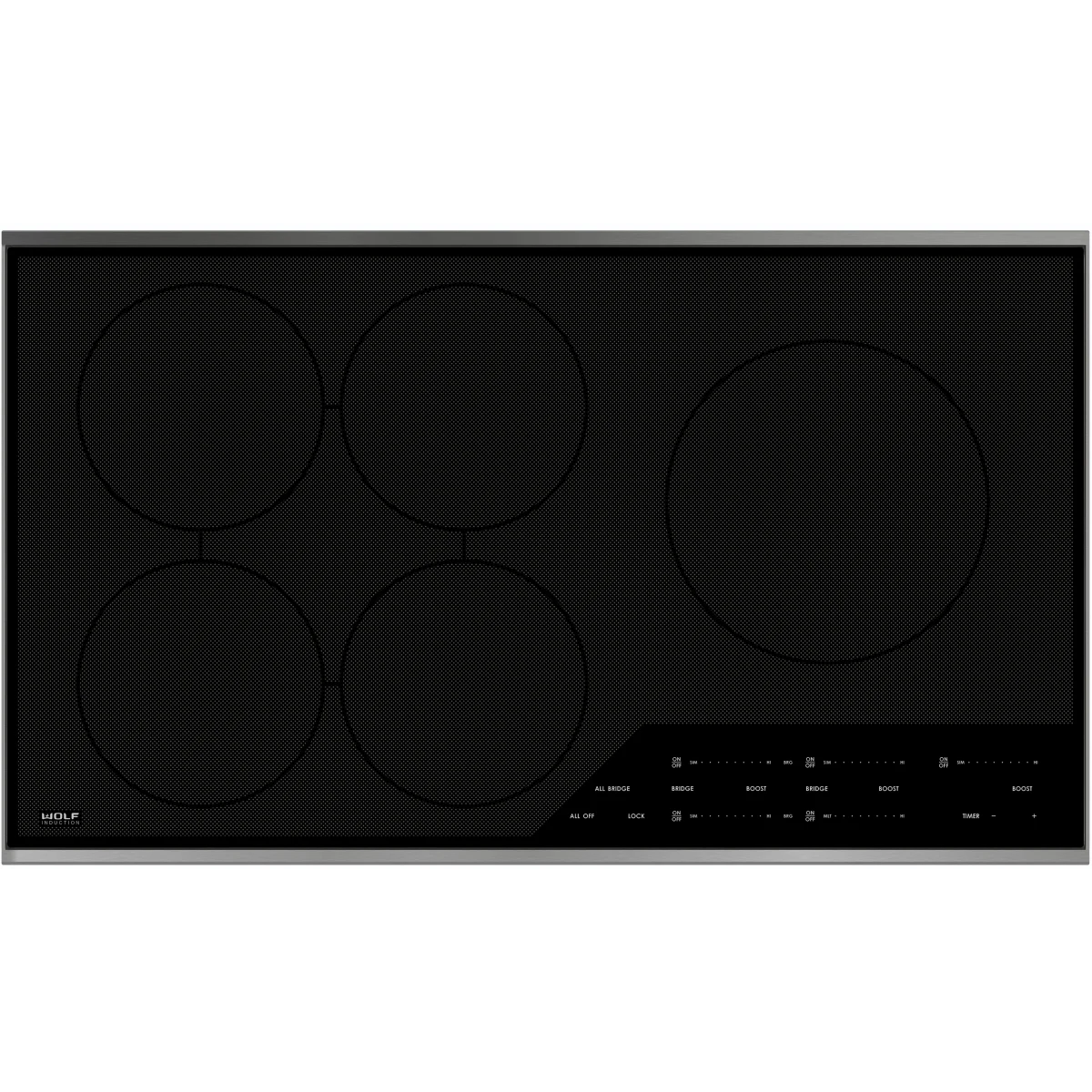 36″ induction cooktop, 5 burners, smooth-top, pan sensing, boost mode, indicators and control panel lock, stainless steel trim